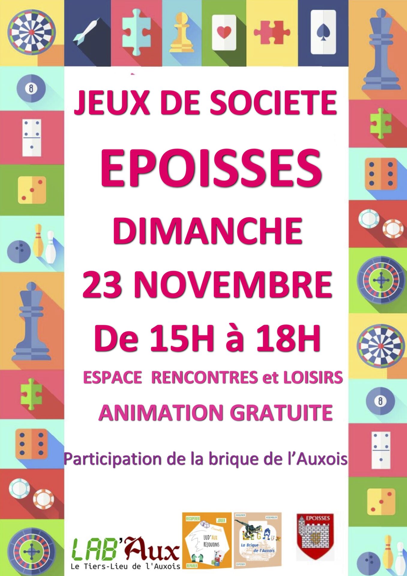 - Semur-en-Auxois = soirées jeux mensuelles Lud’Aux à la Salle Rondeau dans les locaux du Centre social Simone Veil. Nos passionnés vous proposent un temps jeux de société modernes et variés un vendredi soir par mois de 20H à 23H. Entrée libre et gratuite.